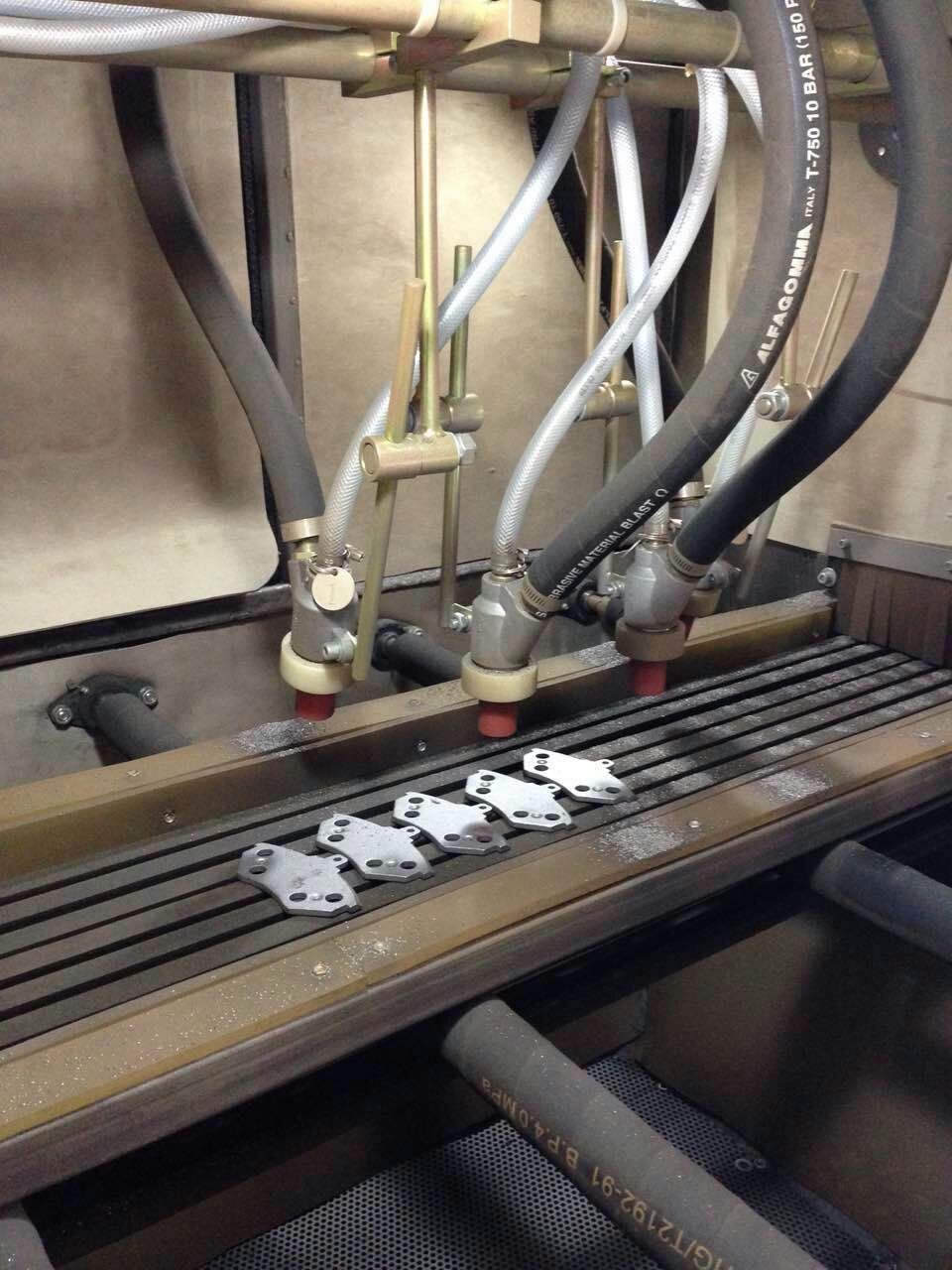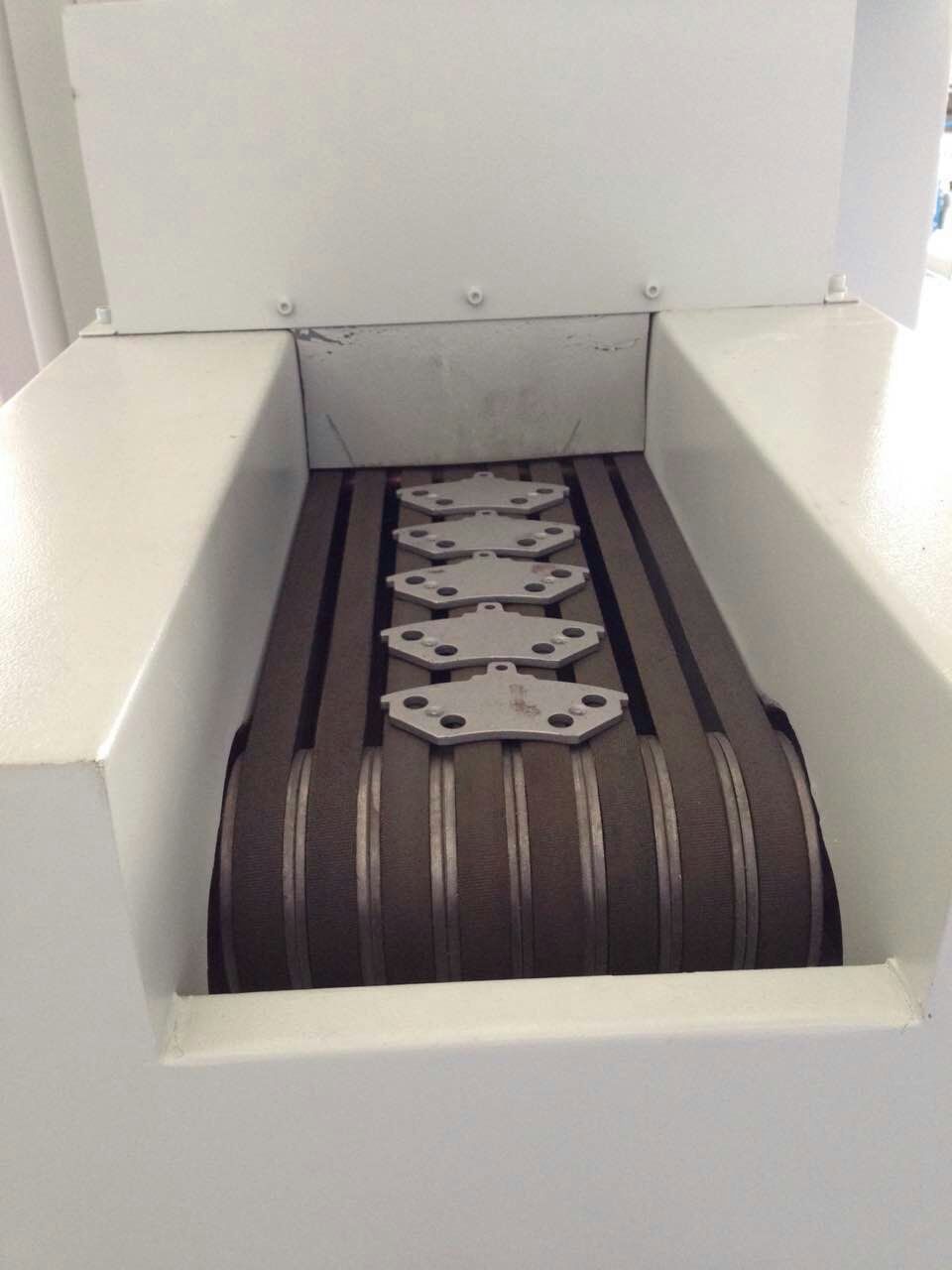 剎車片的生產(chǎn)過程中質(zhì)量尤為關鍵,其中最重要的一個生產(chǎn)環(huán)節(jié),鐵才與剎車片雛形粘合,粘合前需要通過自動噴砂機,才能有效的粘合。