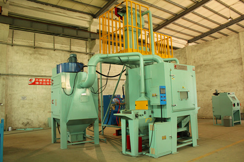 五 砂料的回收 噴砂后的砂料及粉塵通過風(fēng)力循環(huán)送至儲砂斗。主回砂管由特制的高耐磨無縫鋼管制作而成,管內(nèi)襯托高耐磨的硅膠板,可以保護(hù)管道的磨損?;厥辗绞讲捎蒙线M(jìn)風(fēng),下抽的形式,有效的把砂料回收到儲砂斗內(nèi),回收效率可達(dá)到到99%。